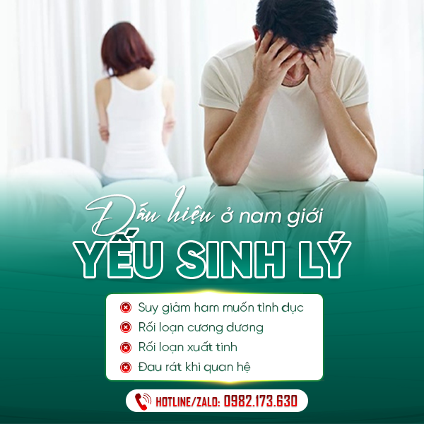 Bệnh yếu sinh lý có chữa được không và địa chỉ khám chữa yếu sinh lý nào ở Hà Đông hiệu quả? Nam giới đang gặp tình trạng xuất tinh sớm, rối loạn cương dương và có dấu hiệu suy giảm ham muốn nên khám và điều trị dứt điểm để hạn chế những biến chứng nguy hiểm về sau.