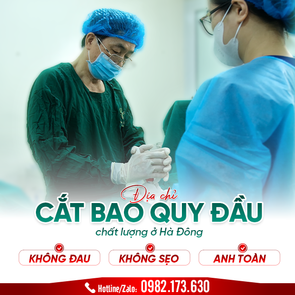 Nam giới đang gặp các vấn đề về cắt bao quy đầu và muốn thực hiện thủ thuật này có thể tham khảo địa chỉ cắt bao quy đầu chất lượng ở Hà Đông, Hà Nội bằng cách liên hệ trực tiếp Hotline/Zalo: 0982.173.630