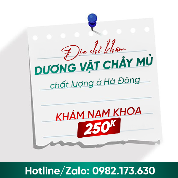 Dù tình trạng dương vật chảy mủ do nguyên nhân nào đi chăng nữa thì việc khám và điều trị ngay thời điểm này đều vô cùng quan trọng. Để lựa chọn cơ sở khám chữa bệnh nam khoa uy tín ở Hà Đông nam giới nên liên hệ trực tiếp Hotline/Zalo: 0982.173.630 để hỗ trợ tư vấn về tình trạng và phương pháp điều trị phù hợp.